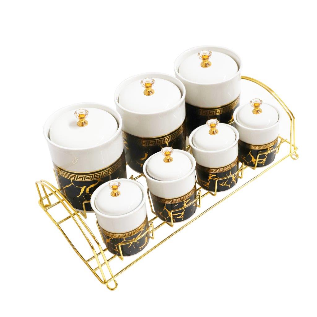 طقم حاويات سيراميك بطباعة تجريدية مكون من 7 قطع وحامل 650 مل/180 مل