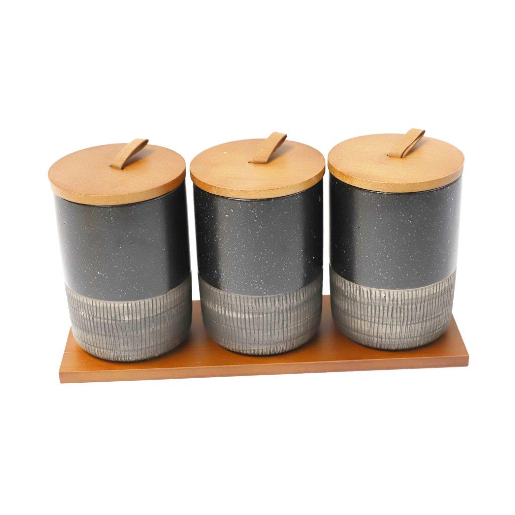 طقم حاويات سيراميك بطباعة تجريدية مكون من 7 قطع مع غطاء خشبي وحامل 10*15 سم