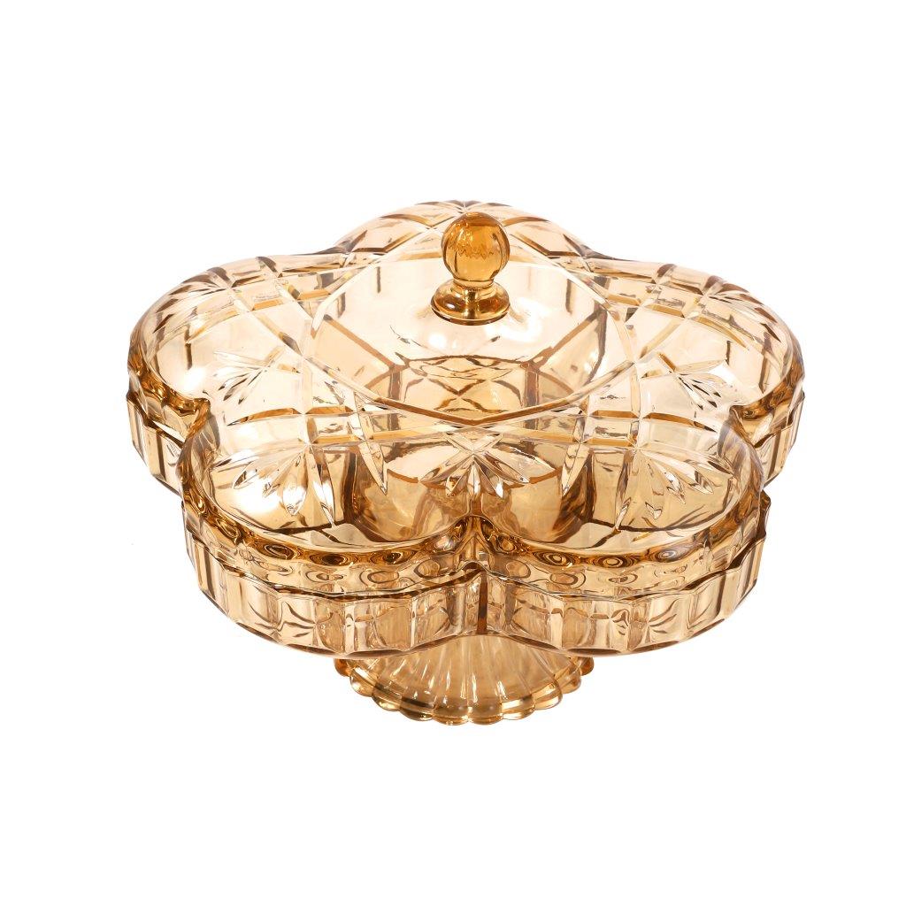 طبق تقديم شامبانيا أكريليك مقسم مع غطاء لفاكهة ومكسرات 30*24 سم
