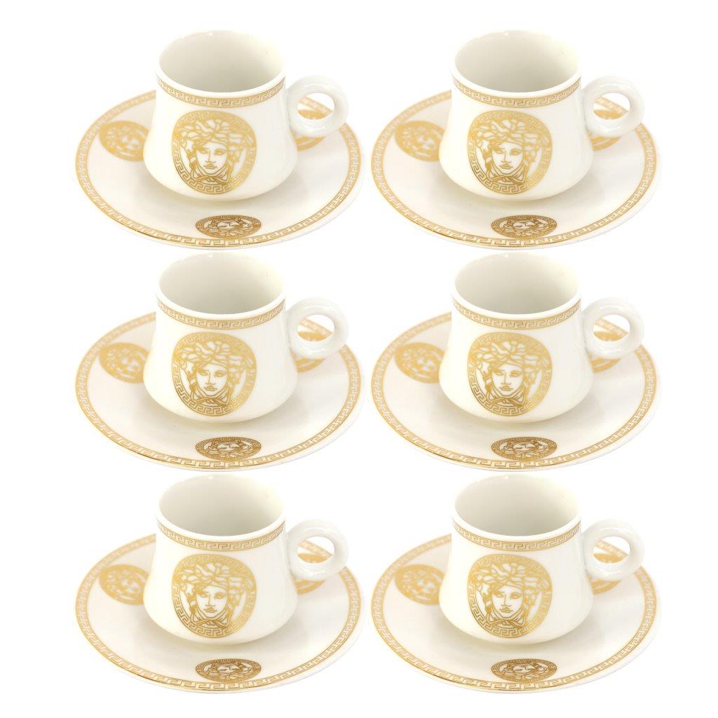 طقم أكواب وصحون قهوة سيراميك مكون من 6 قطع بتصميم مطبوع تجريدي سعة 100 مل 12 سم
