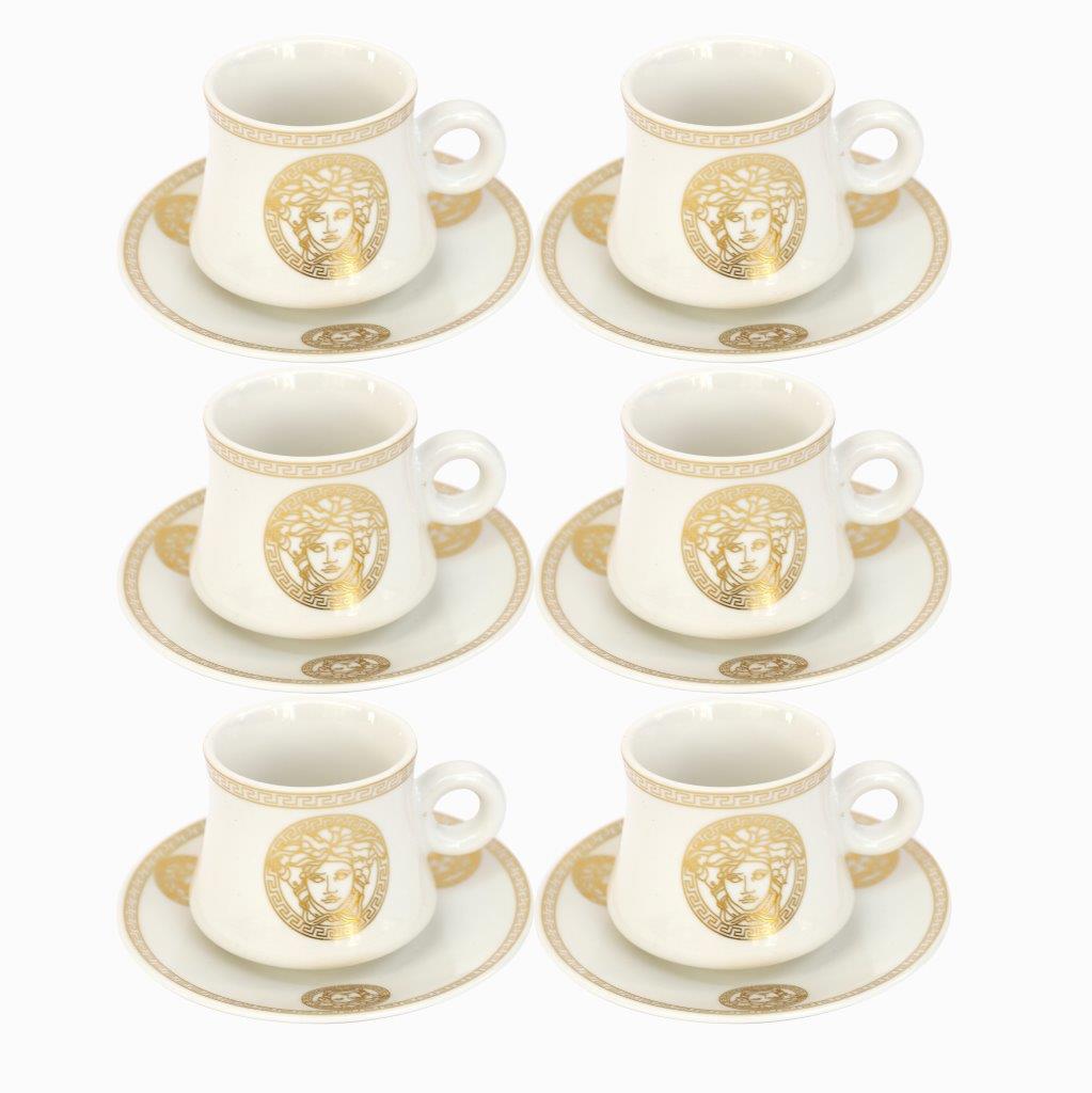 طقم أكواب وصحون قهوة سيراميك مكون من 6 قطع بتصميم مطبوع تجريدي سعة 200 مل 14 سم
