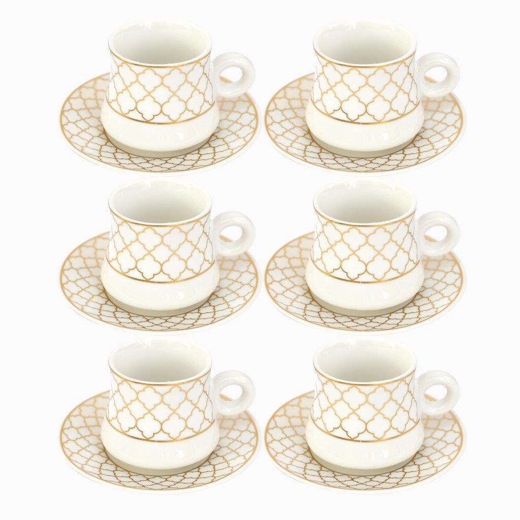 طقم أكواب وصحون قهوة سيراميك مكون من 6 قطع بتصميم مطبوع تجريدي 200 مل/14 سم