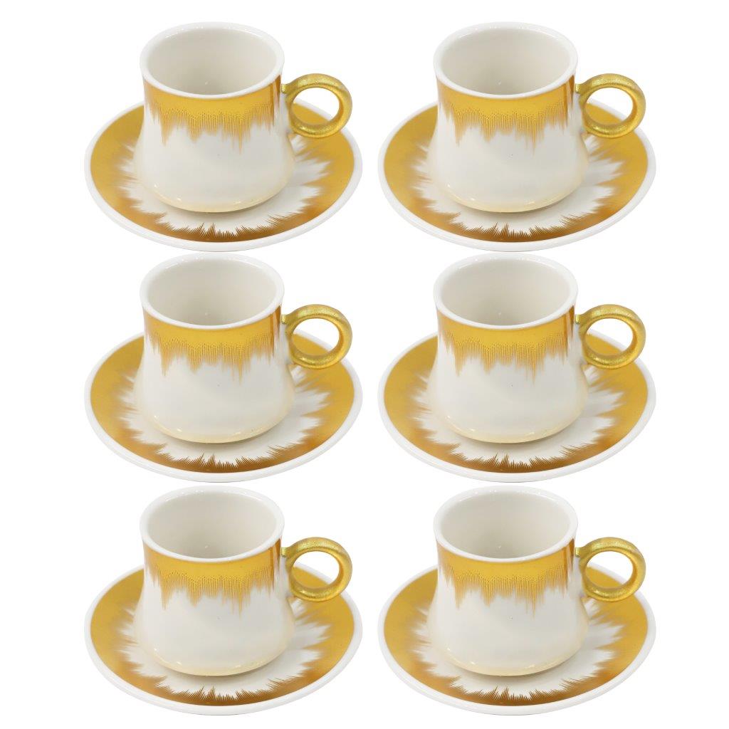 طقم أكواب قهوة سيراميك وصحن عدد 6 قطع بتصميم مطبوع تجريدي 90CC/11 سم