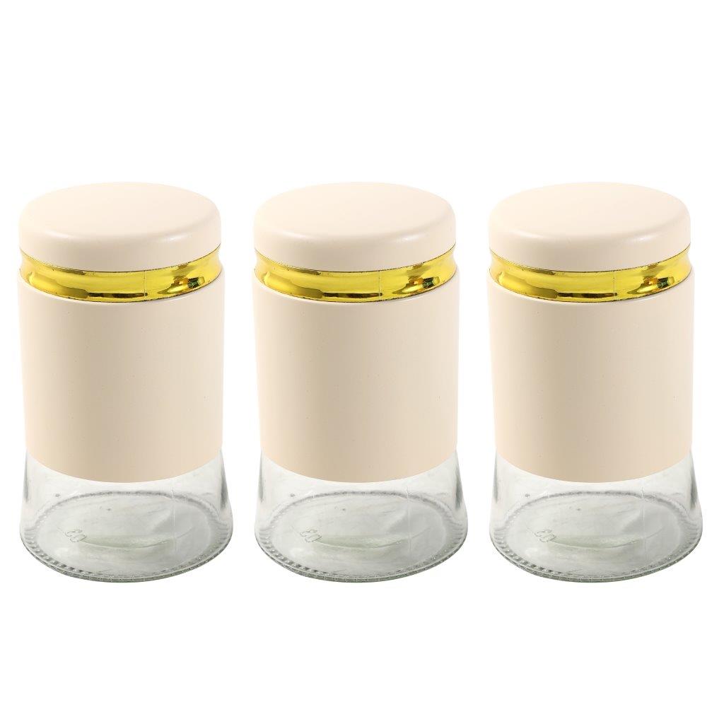 طقم علب شاي وسكر وقهوة من الزجاج الكريمي الذهبي بقاعدة مكون من 3 قطع 11*8*3 سم