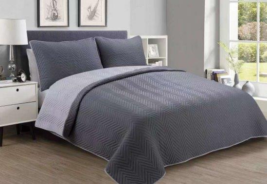 طقم غطاء سرير من القطن باللون الرمادي الداكن مع غطاء وسادة، مجموعة من 3 قطع