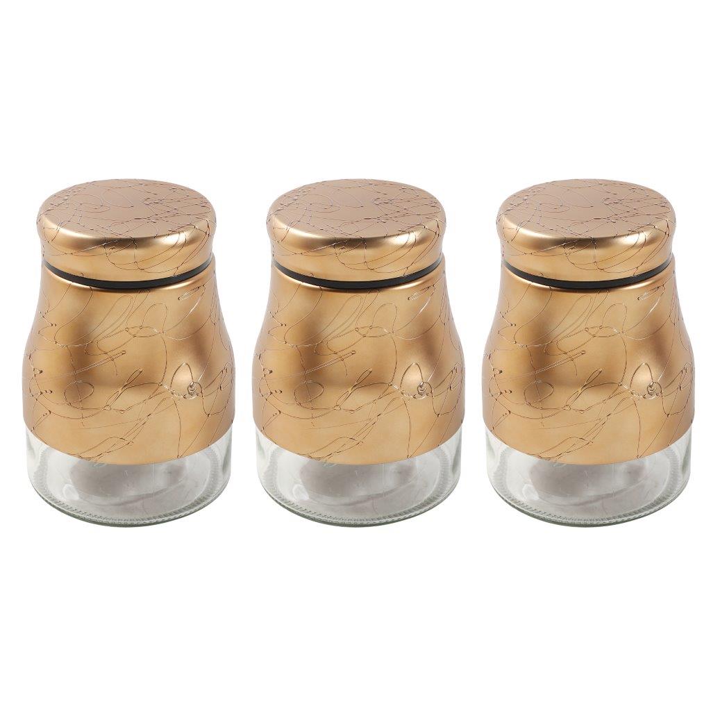 طقم مكون من 3 قطع من علب الشاي والسكر والقهوة ذات القاعدة الزجاجية ذات النمط التجريدي الذهبي، مقاس 9*15.5 سم
