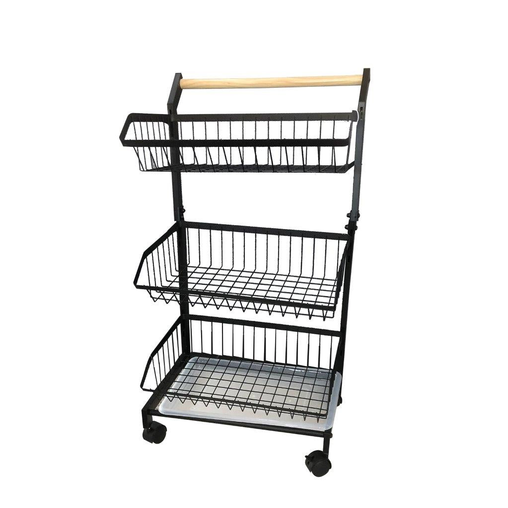 عربة تخزين فواكه وخضروات من الحديد بأربعة عجلات ورف تخزين للمطبخ بلمسة نهائية من الكروم 40*29*67 سم