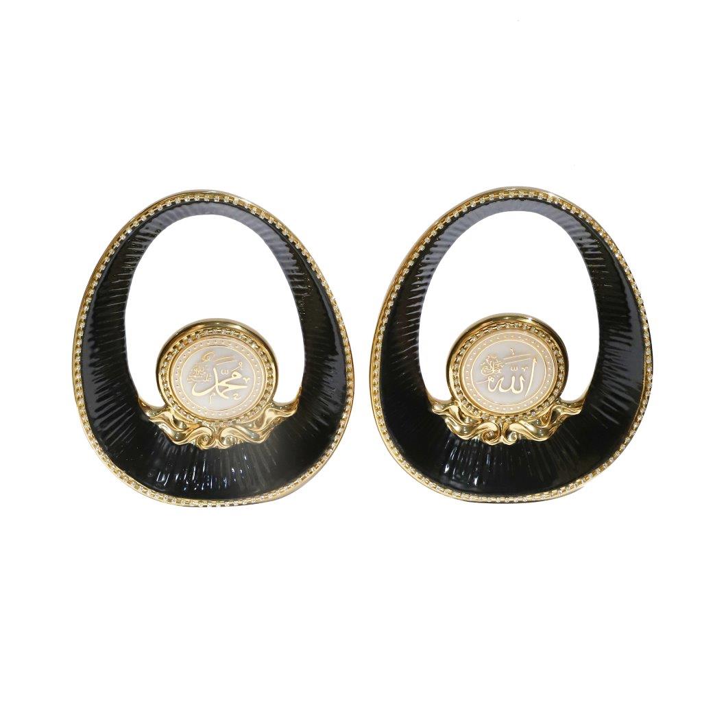 ديكورات سيراميك اسلامية باللونين الاسود والذهبي اسم الله محمد مجموعة من قطعتين 25*20 سم