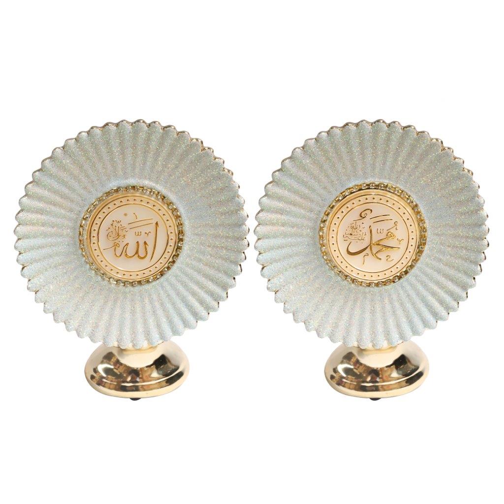 ديكور سيراميك إسلامي مصنوع من الذهب باسم الله محمد مجموعة من قطعتين 23*18 سم