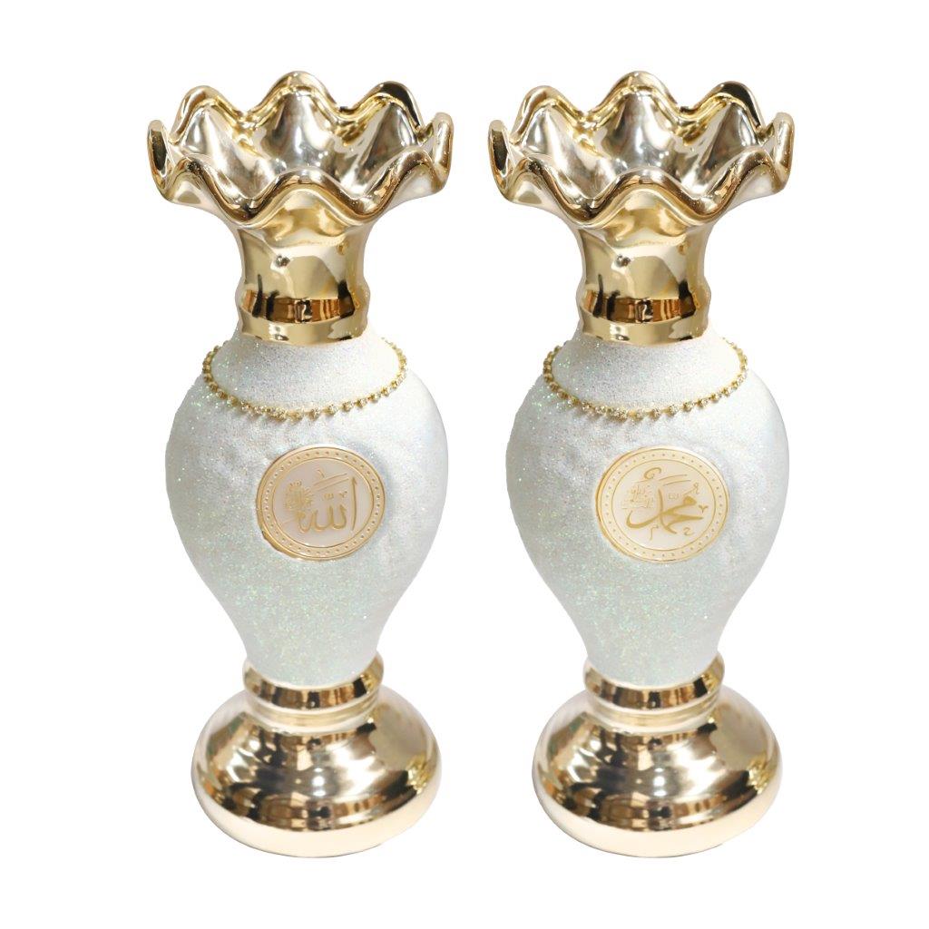 ديكور سيراميك إسلامي مصنوع من الذهب باسم الله محمد مجموعة من قطعتين 33 سم