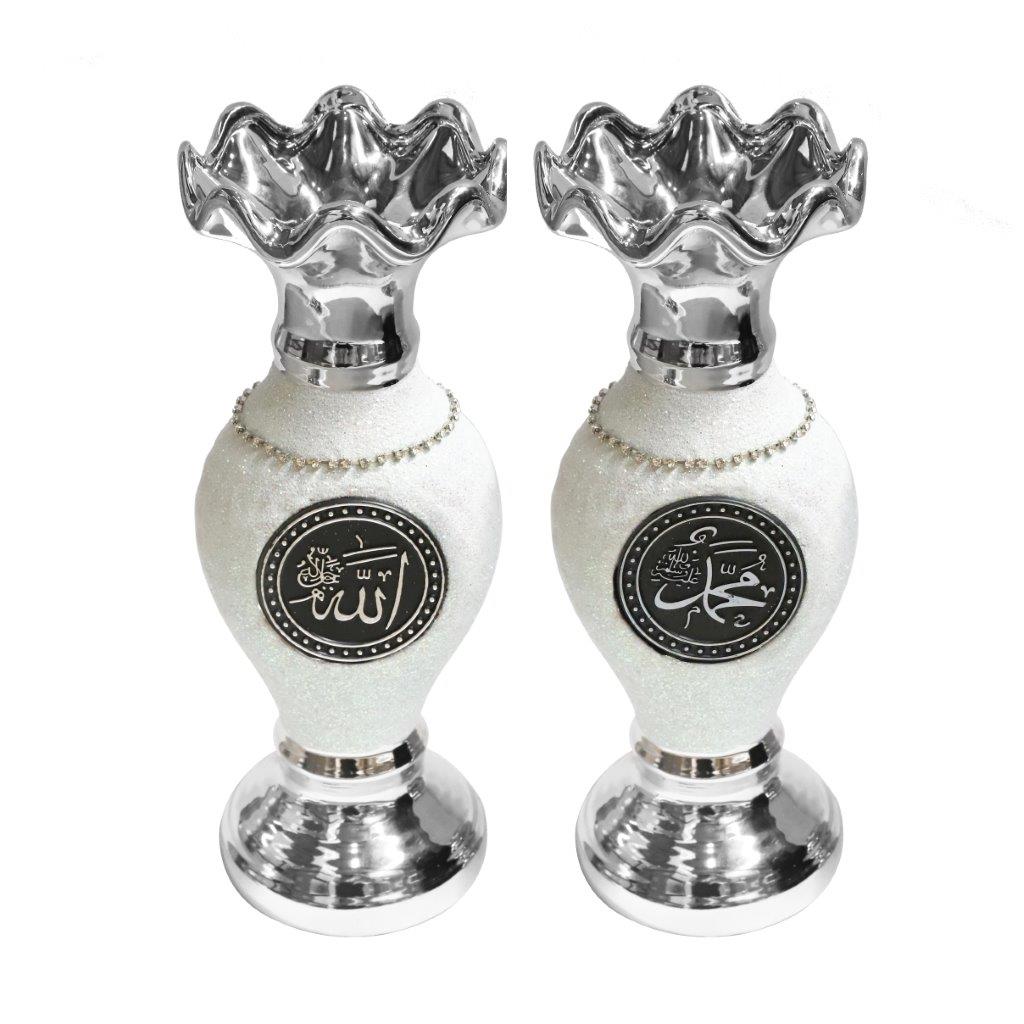 ديكورات سيراميك اسلامية مصنوعة يدويا فضية اسم الله محمد مجموعة من قطعتين 33 سم