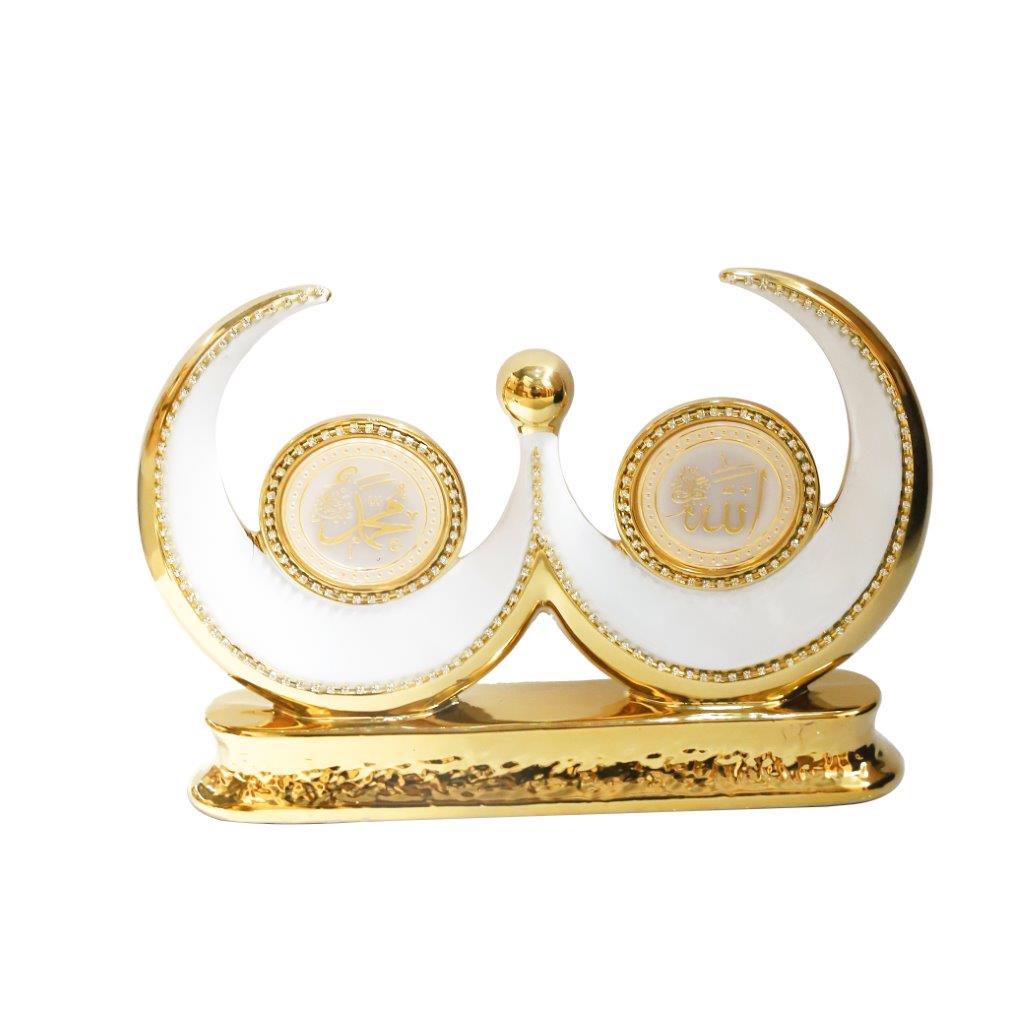 ديكور سيراميك اسلامي باللونين الابيض والذهبي اسم الله محمد 25*34 سم