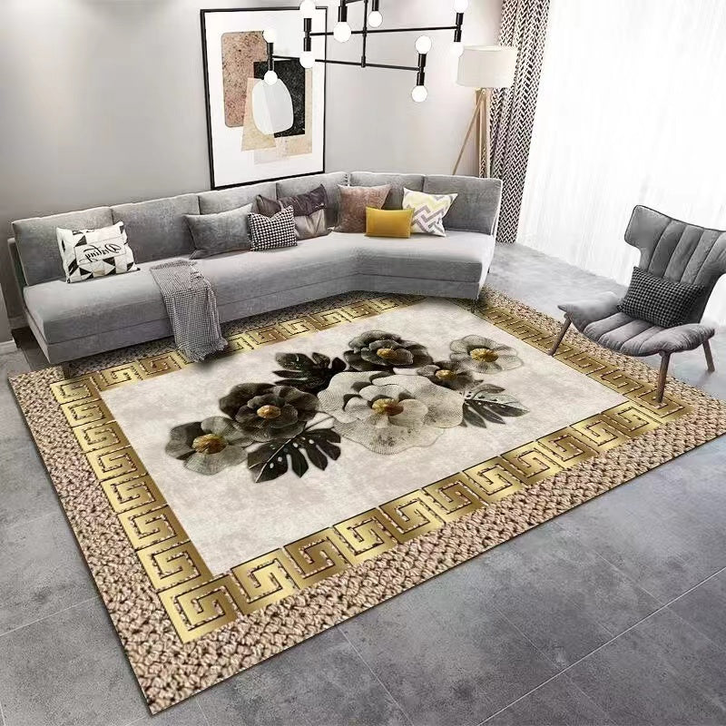 سجادة داخلية خفيفة فاخرة بتصميم فني مزخرف بميدالية زهرية منسوجة آليًا باللون البيج مع حافة مفتاح يوناني 200*300 سم