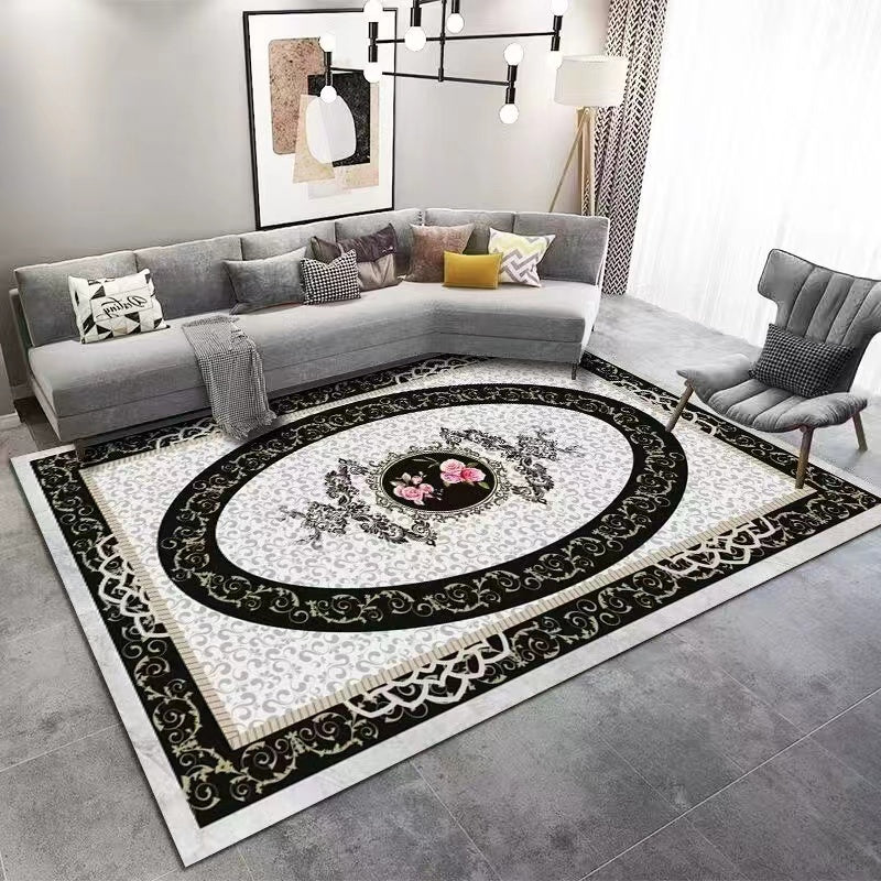 سجادة داخلية خفيفة فاخرة بتصميم فني مزخرف بميدالية زهرية منسوجة آليًا باللون الفضي مع حافة مطبوعة بالزهور 200*300 سم