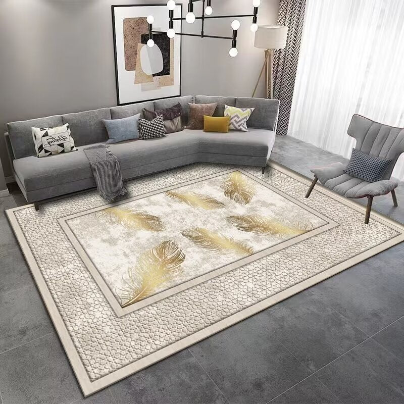 سجادة داخلية خفيفة فاخرة بتصميم فني من الريش منسوجة آليًا باللون البيج مع حافة مطرزة 160*230 سم