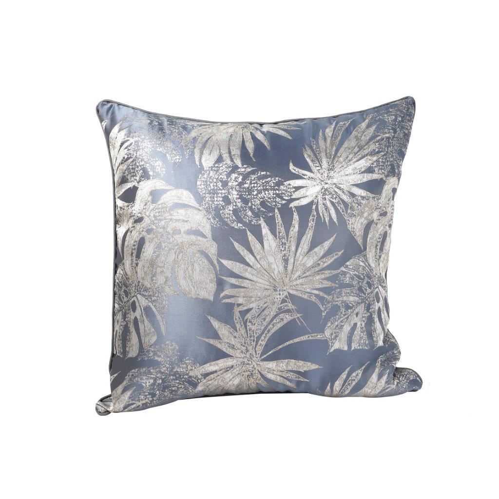 غطاء وسادة عصري مزخرف بطبعة زهور باللون الفضي والأزرق مقاس 50*50 سم