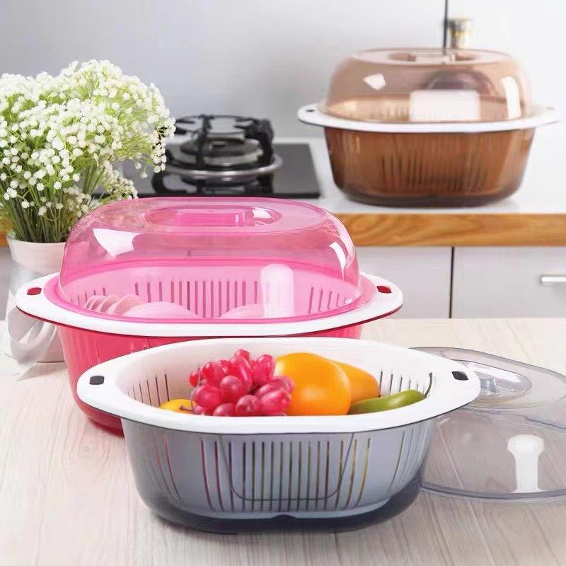 سلة مصفاة الأرز متعددة الأغراض من البلاستيك للخضروات والفواكه مع غطاء 36*25*19 سم