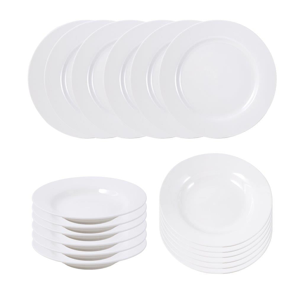 طقم عشاء سيراميكي سادة باللون الأبيض الفانيليا مكون من 18 قطعة مع أطباق عشاء وأوعية وأدوات تقديم