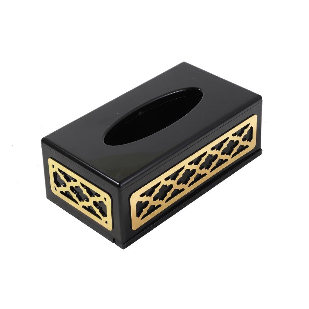 حامل مناديل مستطيل من الأكريليك بتصميم تجريدي باللون الأسود الذهبي عالي الجودة 12*22*8 سم