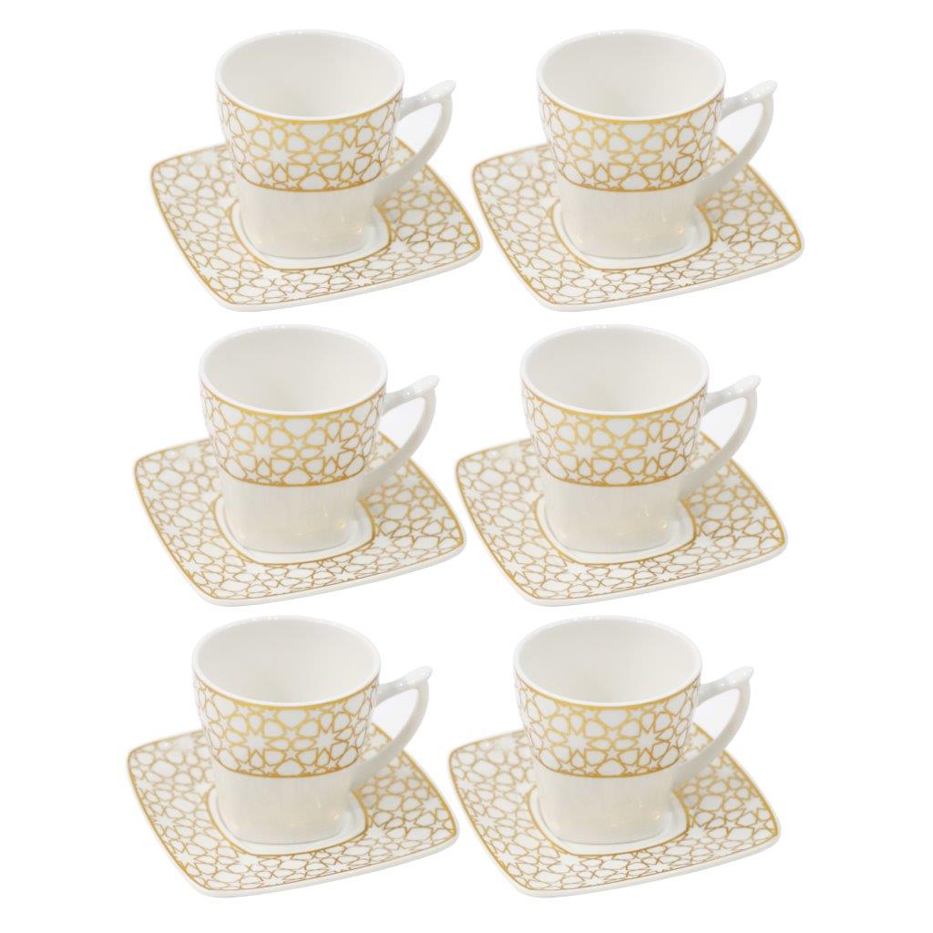 طقم فناجين قهوة وصحن سيراميك بطبعة تجريدية باللون الكريمي الملكي مكون من 6 قطع