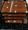 طاولة قهوة متداخلة ذات سطح خشبي مستطيل مع تصميم تجريدي، مجموعة من 4 قطع