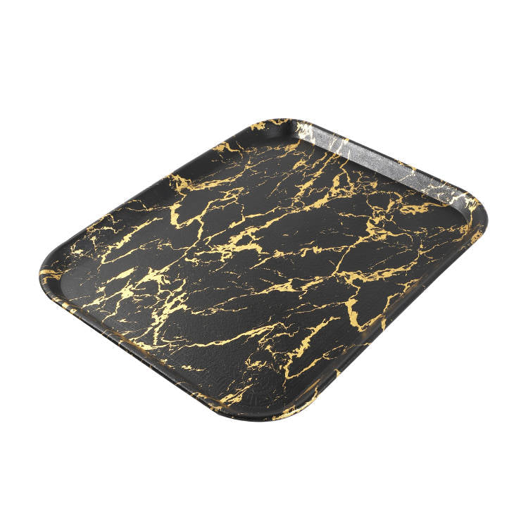 صينية بلاستيكية مستطيلة باللونين الأسود والذهبي - 44*34 سم