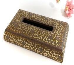علبة مناديل الوجه ديكو محفورة باللون البني مستطيلة الشكل وحامل مناديل 24.5*14*6 سم