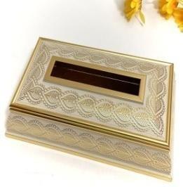 علبة مناديل وجه مستطيلة الشكل منقوشة بنقشة القهوة الفاتحة، مقاس 24.5*14*6.5 سم
