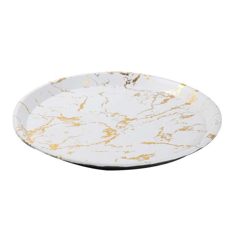 طقم صينية بلاستيكية دائرية من 3 قطع باللونين الأبيض والذهبي (29.5 سم / 35.5 سم / 40.5 سم)