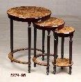 طاولة قهوة دائرية خشبية مع زخارف معدنية بتصميم تجريدي، مجموعة من 3 قطع