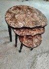 طاولة قهوة دائرية خشبية متداخلة مع لمسات معدنية بتصميم تجريدي، مجموعة من 3 قطع