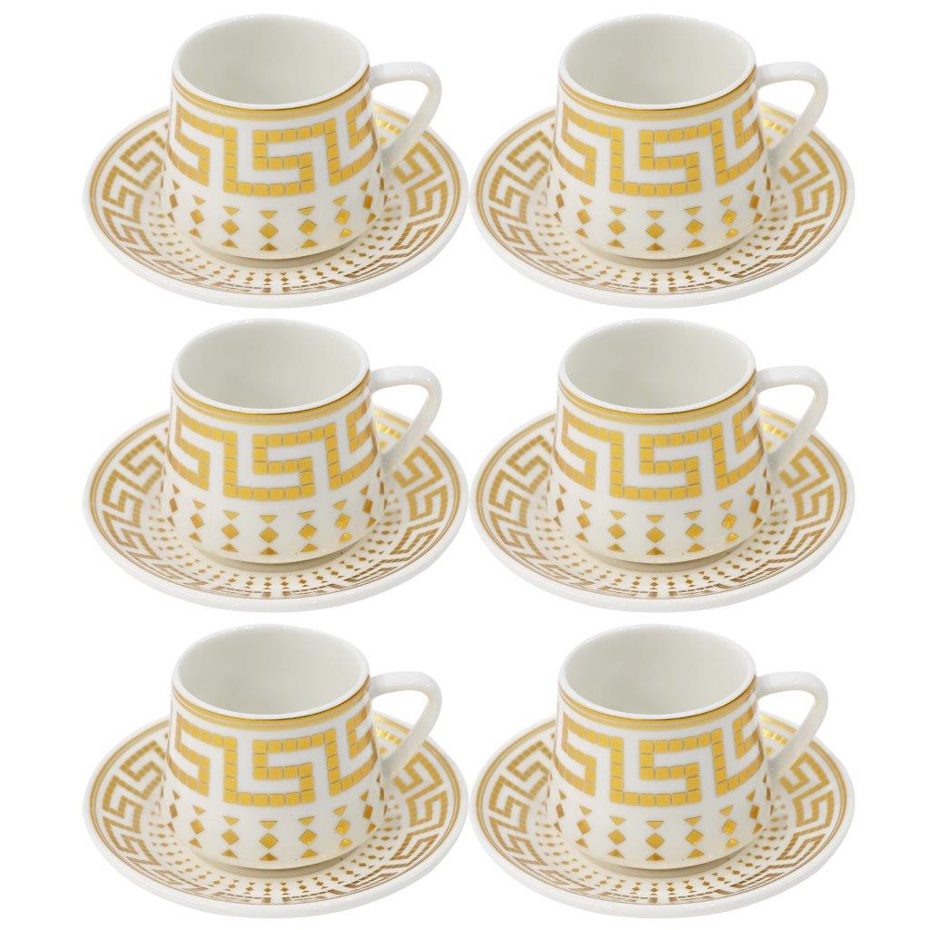 طقم فناجين قهوة وصحن سيراميك بطبعة تجريدية باللون الكريمي الملكي مكون من 6 قطع