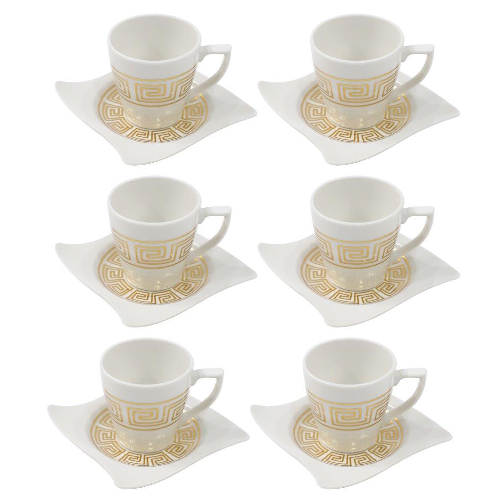 طقم فناجين قهوة وصحن سيراميك بطبعة تجريدية باللون الكريمي الملكي مكون من 6 قطع