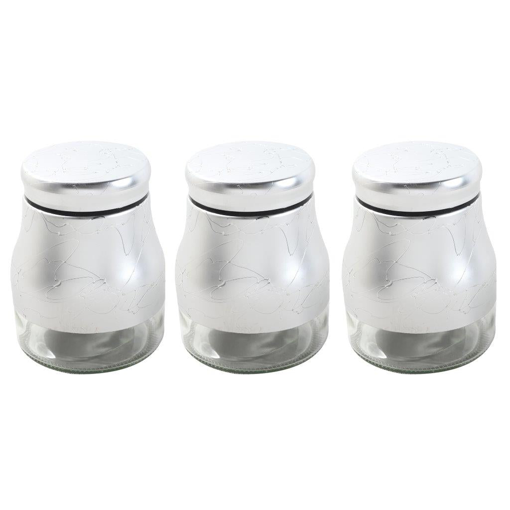 طقم شاي وسكر وقهوة بقاعدة زجاجية بنمط تجريدي فضي مكون من 3 قطع 9*15.5 سم