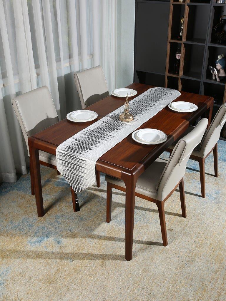 مفرش طاولة للمطبخ وغرفة الطعام، تجريدي باللونين الأبيض والأسود، 210*30 سم