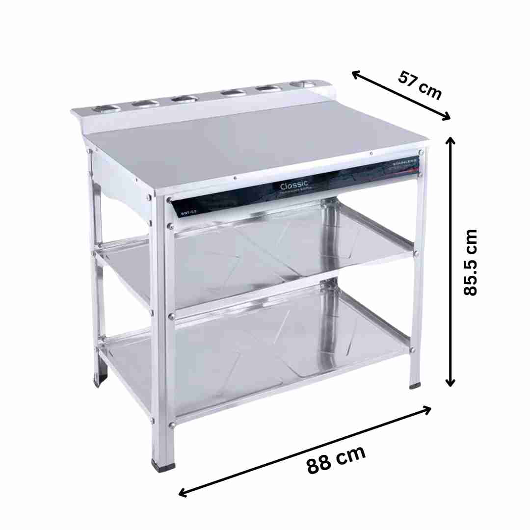 حامل موقد طاولة من الفولاذ المقاوم للصدأ للاستخدام الخارجي والتخييم مزدوج 85.5 × 57 × 88 سم