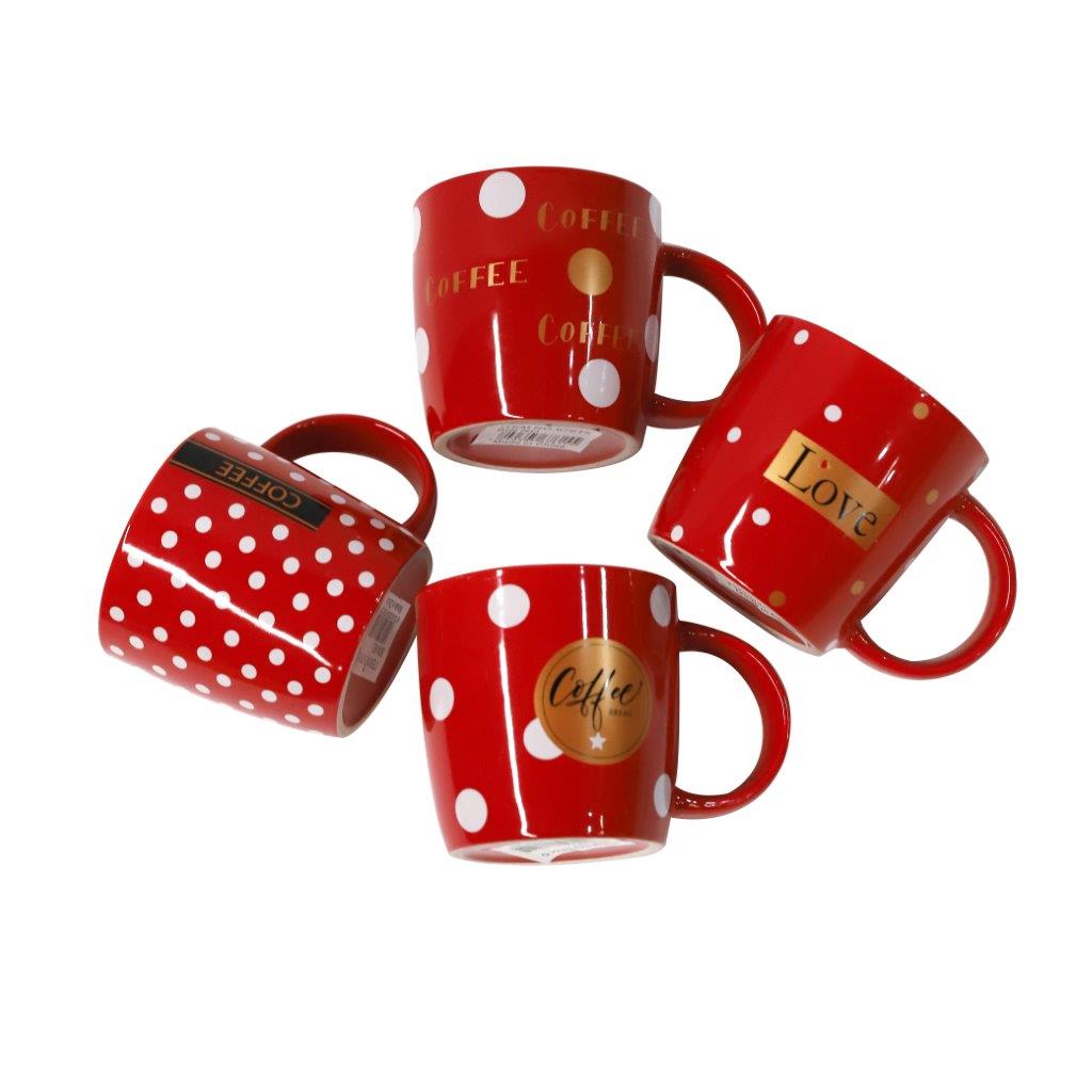 Red Ceramic Coffee Mug with Lid Abstract Print Design 8.5*8.5 cm