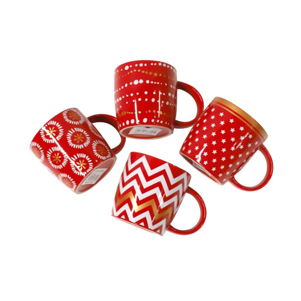 Red Ceramic Coffee Mug with Lid Abstract Print Design 8.5*8.5 cm