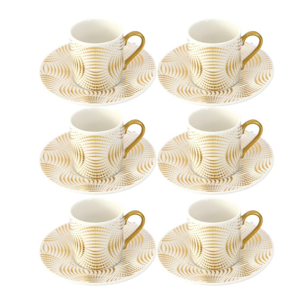 Ceramic Coffee Cup and Saucer Set of 6 Pcs Abstract Print Design 90 ml 12 cm