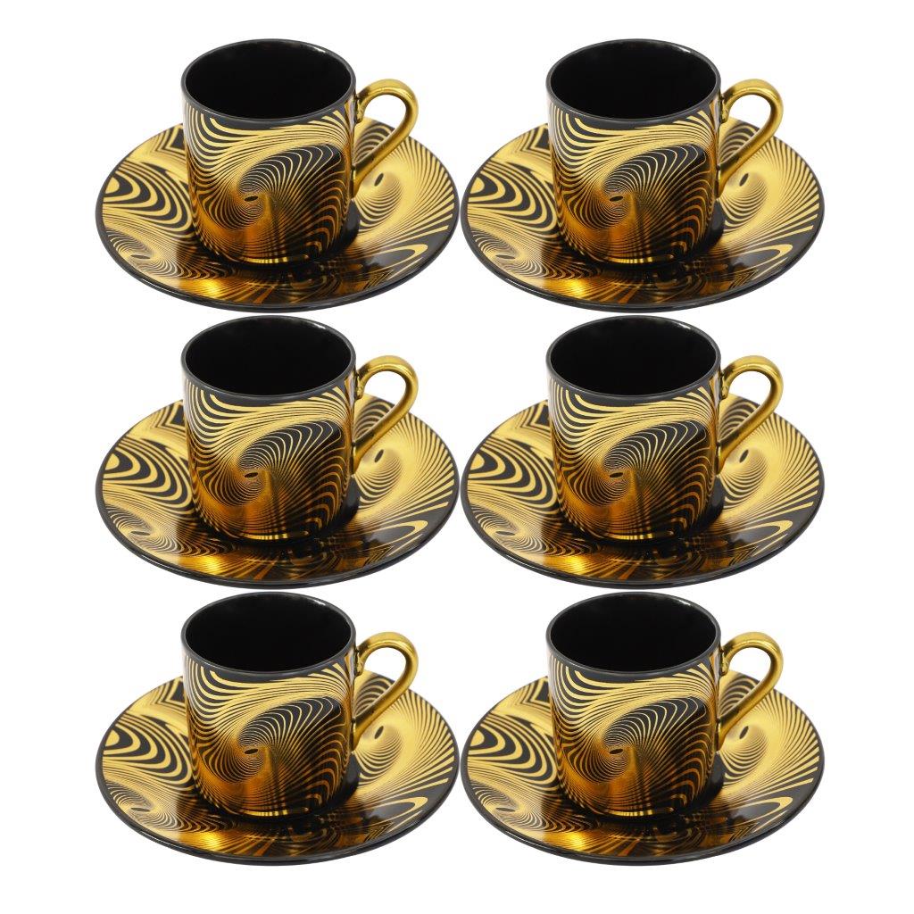 Ceramic Coffee Cup and Saucer Set of 6 Pcs Abstract Print Design 90 ml 12 cm