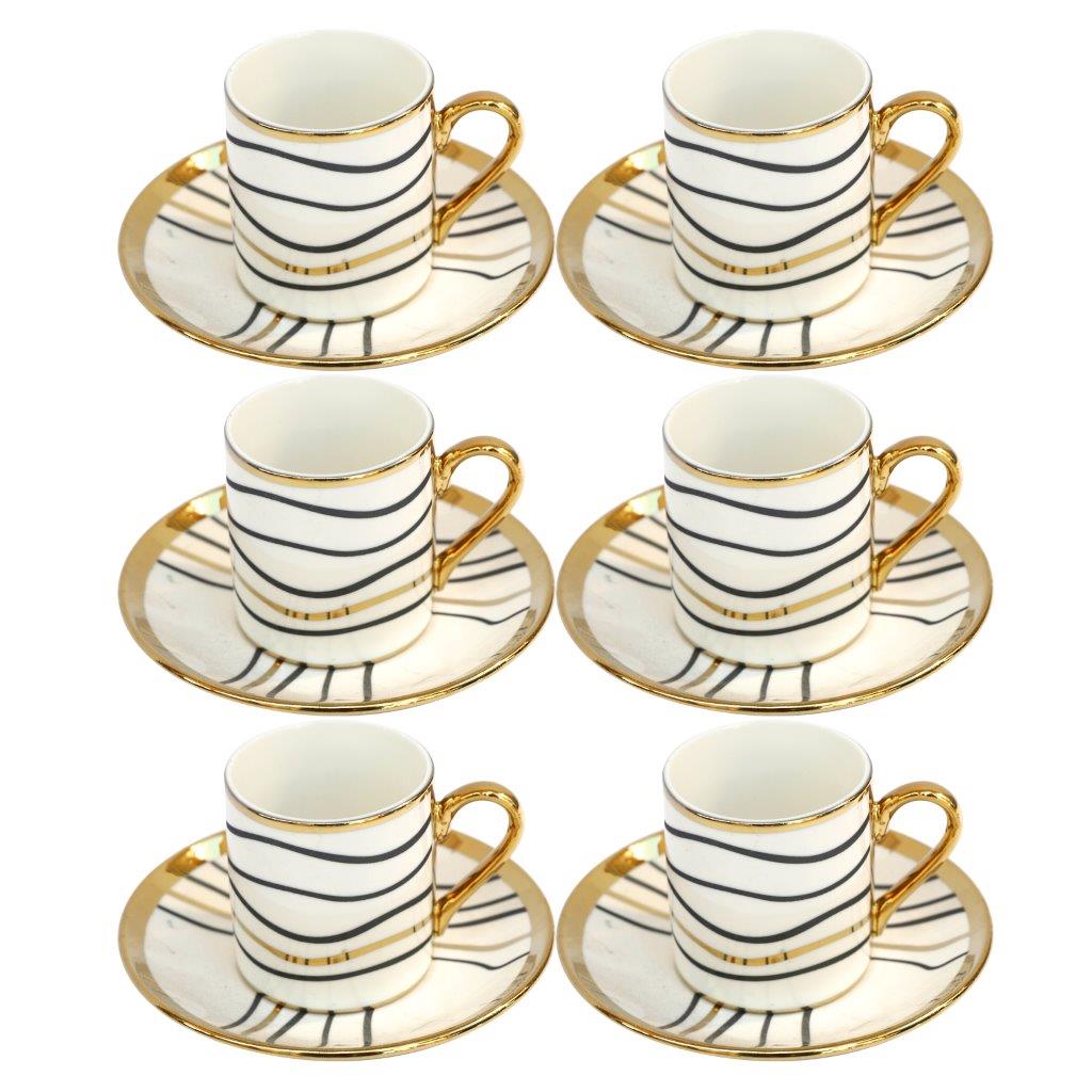 Ceramic Coffee Cup and Saucer Set of 6 Pcs Abstract Print Design 80 ml 11 cm