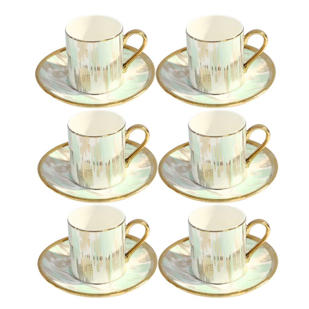 Ceramic Coffee Cup and Saucer Set of 6 Pcs Abstract Print Design 80 ml 11 cm
