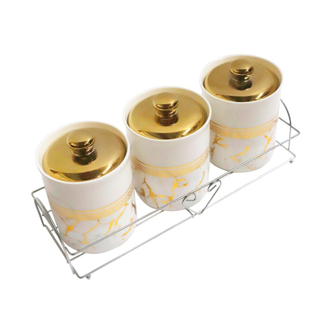 Abstract Print Ceramic Canister Set of 3 Pcs and Stand 650 ml