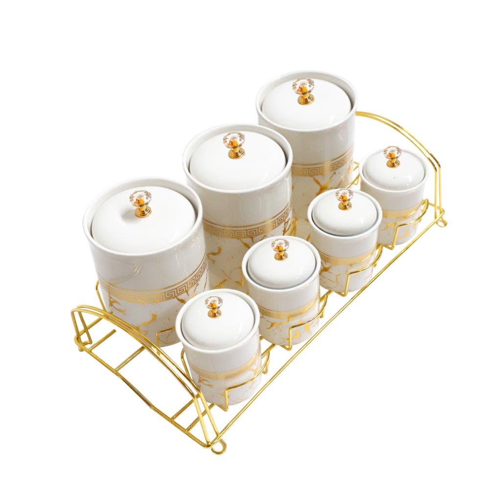 Abstract Print Ceramic Canister Set of 7 Pcs and Stand 650 ml/180 ml