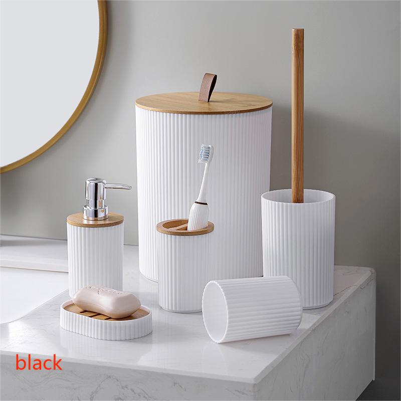 Black Bathroom Accessories Soap Dispenser Toothbrush Holder Set of 6 Pcs 24.5*19.5/37*10/16.5*7.5 cm