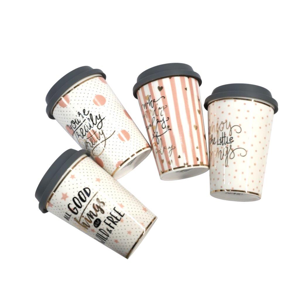 Bone China Ceramic Coffee Mug Decal Mug with Silicone Lid Abstract Print 400 ml