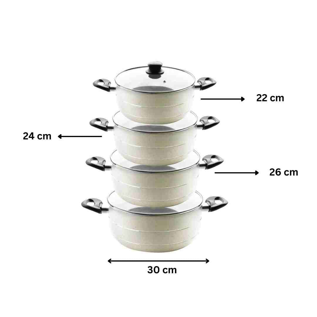 3. Four Sizes: This set includes four sizes (22cm, 24cm, 26cm, and 30cm), catering to various cooking needs. From individual portions to family-sized meals, these casseroles provide the perfect range of sizes for different culinary creations.
