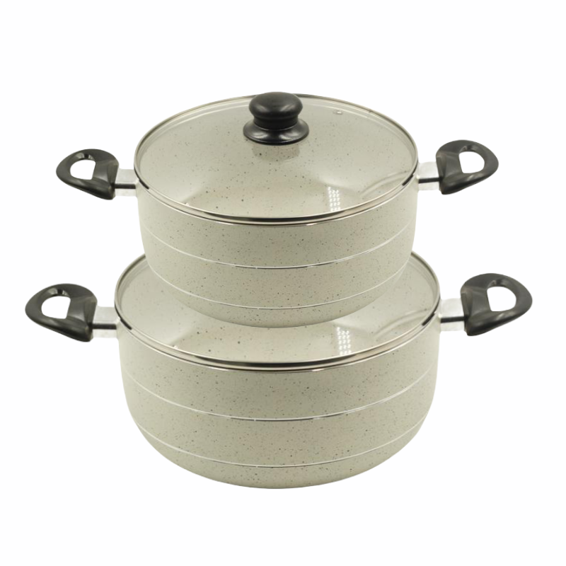 Upgrade your kitchen with our Beige Marble Coating Casserole Set, featuring an Induction Base, Non-Stick Surface, and two versatile sizes - 32 cm and 36 cm. This set is designed to combine style and functionality, enhancing your cooking experience.