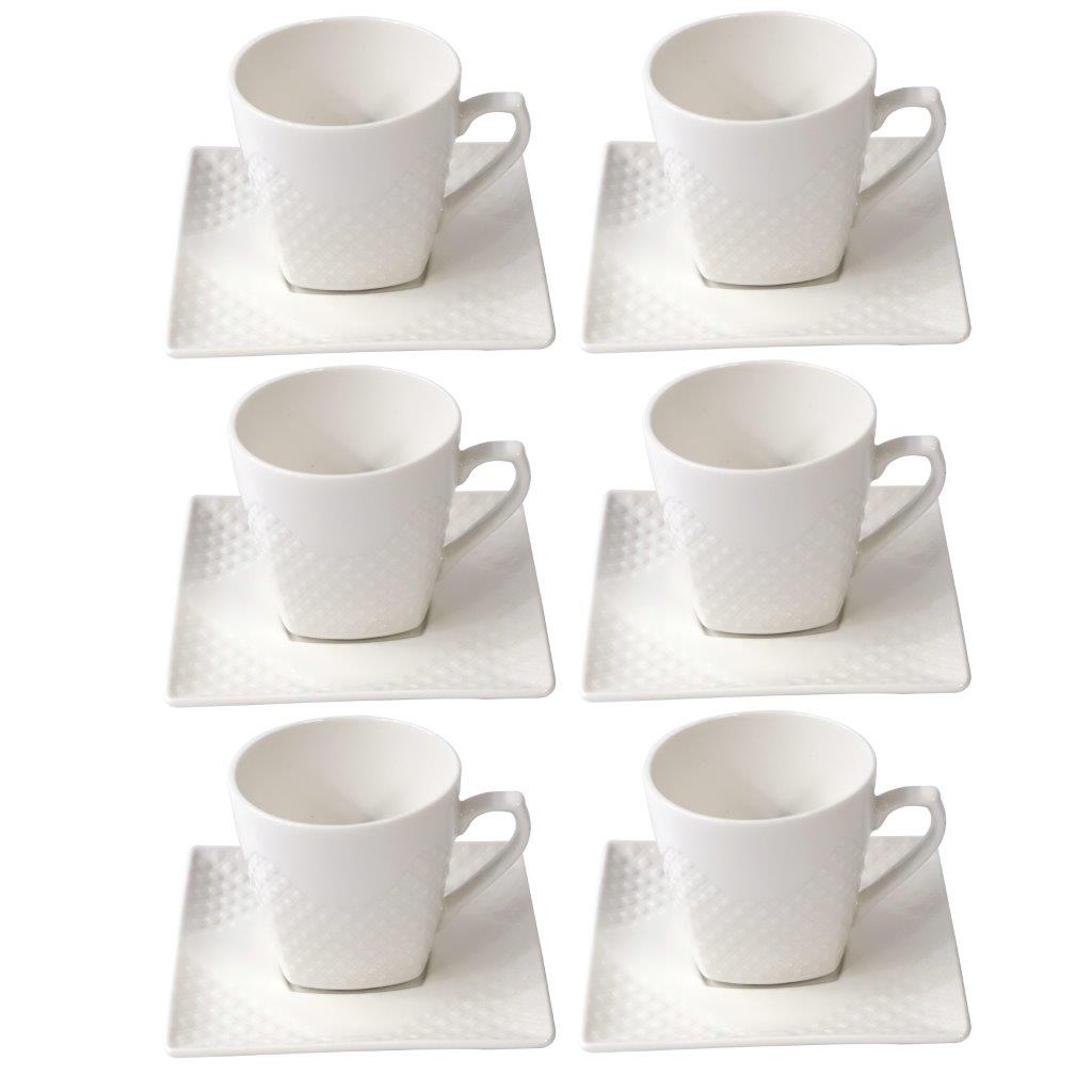 Ceramic Coffee Cup and Saucer Set of 6 Pcs Abstract Embossed Design 85CC/10.5*10 cm