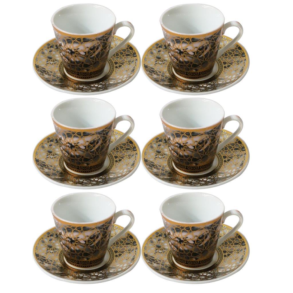 Ceramic Coffee Cup and Saucer Set of 6 Pcs Abstract Print Design 85CC/11 cm
